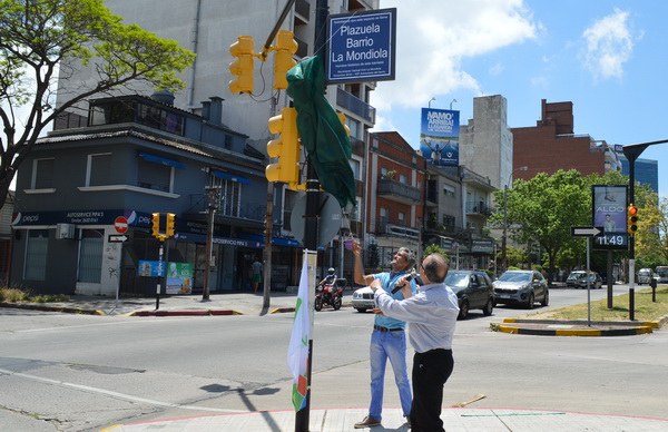 Ha quedado un cartel testigo del acto reclamando la denominación «Plazuela Barrio La Mondiola» en el que consta: