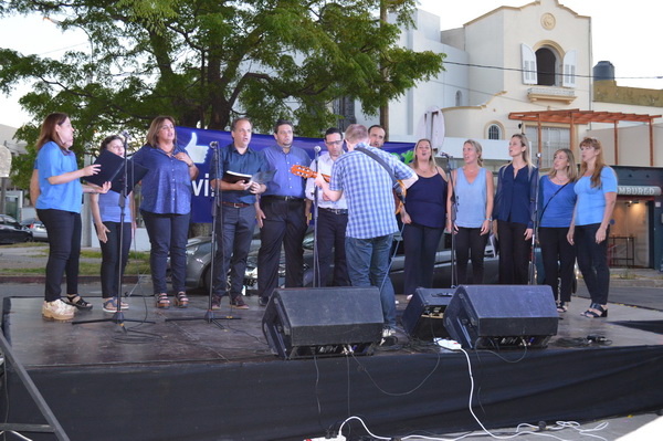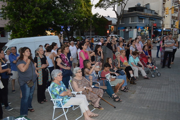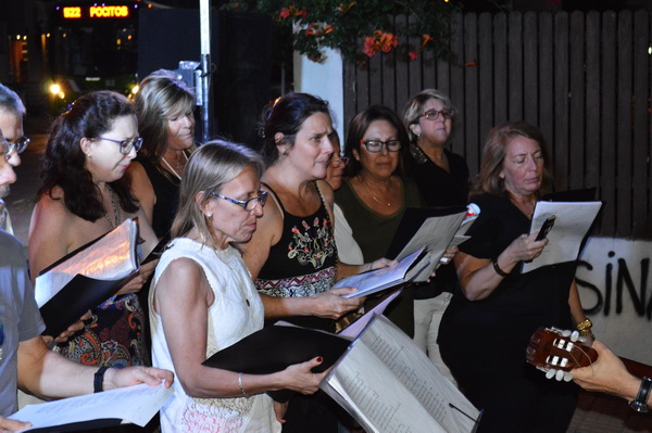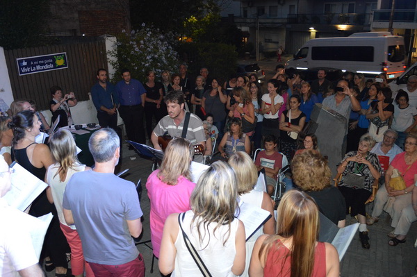 Varios grupos corales actuaron en la esquina a la que asistieron muy pocos vecinos a primera hora, pero, luego al ver que las voces se escuchaban en todo el barrio se acercaron algunos más portando sus sillas y con mate en mano.