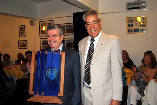 El presidente de la institución Carlos Enseñat y la secretaria Alicia Sirtori han sido los anfitriones dando la bienvenida a todos y Enseñat le entregó en nombre de la institución Balear una artesanía de la región al Cónsul.