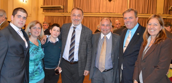 Julio Carbajales que le fue entregada la medalla por el consejero laboral Andrés G. Murga y Guillermo Rego, recibió la medalla de manos de la presidente de la FIEU Rosita Lladó