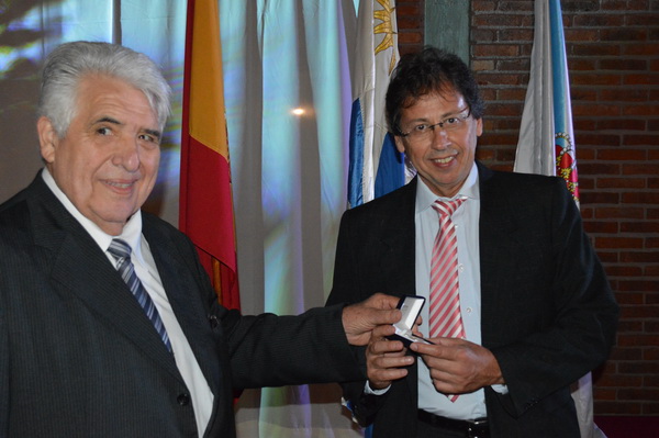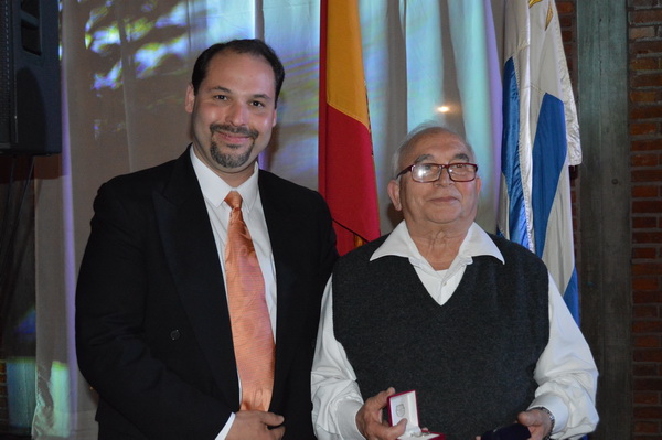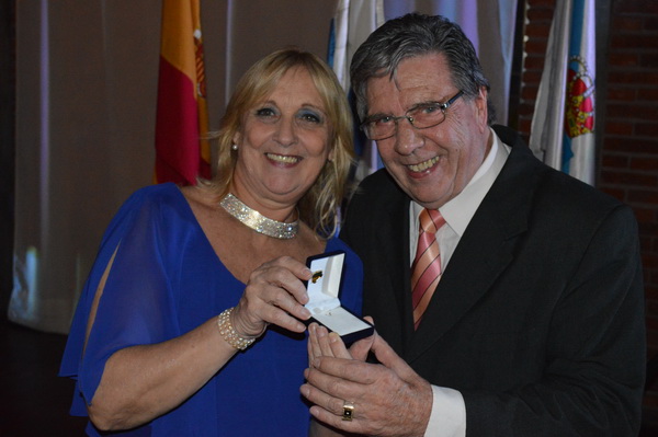 Cónsul de España José R. Moyano, Pres. AEGU Cdra. Elvira Dominguez, Pres. C. Gallego Julio Rios, Su esposa Mriella Zilli y Consejero Benito Diez Arce.