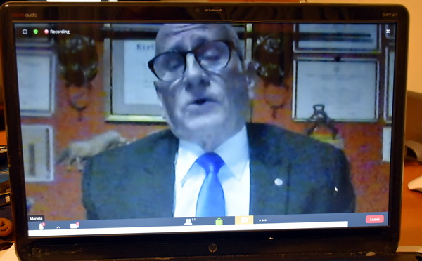 Participaron autoridades de aquí y también desde España a pesar de la diferencia horaria. Abrió la parte protocolar el presidente de la institución Julio Rios y siguieron luego todos los que quisieron dejar su mensaje de salutación. La moderadora ha sido la secretaria de la institución Beatriz Doldan, que fue dando la palabra a quienes lo solicitaban. Este video realizado especialmente fue compartido pero por razones técnicas no se pudo ver por zoom. Aquí lo tienen.