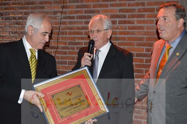 El presidente del hogar Angel Dominguez ha recibido plaquetas recordatorias para la institución que preside tanto del Club español de Montevideo como del propio Centro gallego de manos de sus presidentes, Dr. Victor Moldes y Jorge Torres respectivamente.