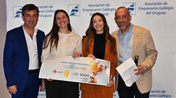 El desafío emprendedor primer premio Asociación Española lo ha entregado el presidente de AESP Alejandro Veiras a la empresa Phycotech, formada por Fiorella Toniotti, Marcia Martínez, y Matilde Klett