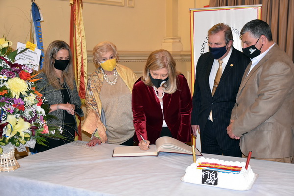 La Comisión Directiva de la Federación ha invitado a firmar el libro de honor y cortar la tradicional torta a la cónsul para tomar la clásica foto de familia que simboliza la integración de la FIEU a los 54 años de su fundación.