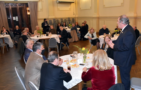 Luego de haber realizado una breve  asamblea mensual de delegados, donde hubo un minuto de silencio por los fallecidos en estos 2 años, se aprobaron por unanimidad los temas pendientes.  El brindis  se ha realizado con el protocolo sanitario vigente,  distanciamiento y con cubre boca la mayor parte del tiempo, en el salón principal del Club Español,