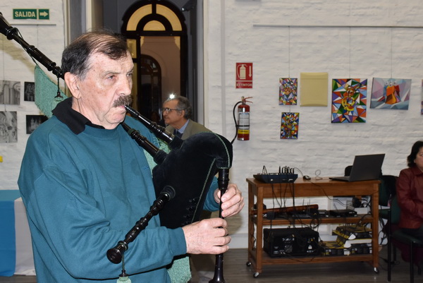 Los gaiteros Anxo Lorenzo y Carlos González.obsequiaron a los presentes una tradicional pieza gallega y el gaitero Juan Sánchez hizo el preámbulo de la reunión.