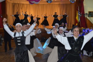 La fiesta ha tenido la animación de los cuerpos de danza de la institución, bajo la dirección de Elizabeth Polak ofreciendo  un despliegue en escena con sus trajes típicos con danzas gallegas, rumba y flamenco. Ver video en el link