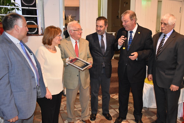 El presidente del Consejo de Residentes Españoles CRE, Jorge Torres ha entregado una plaqueta recordatoria junto a sus directivos y acompañados del Cónsul.