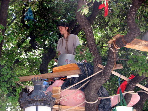 Nuestro corresponsal en Barcelona Pablo Klisowski ha podido tomar fotografías de los acampantes en plaza Cataluña, minutos antes de los sucesos violentos con la policía. Hasta sobre los árboles habían instalaciones y carpas.