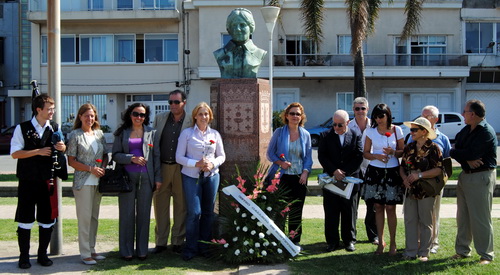En un sencillo acto y en conmemoración del día de la mujer, la comisión de cultura del Centro Gallego de Montevideo a colocado una ofrenda de flores al pie del monumento a Rosalía de Castro en plaza Galicia.