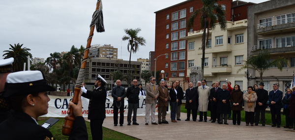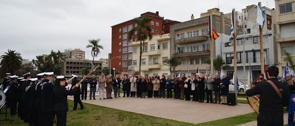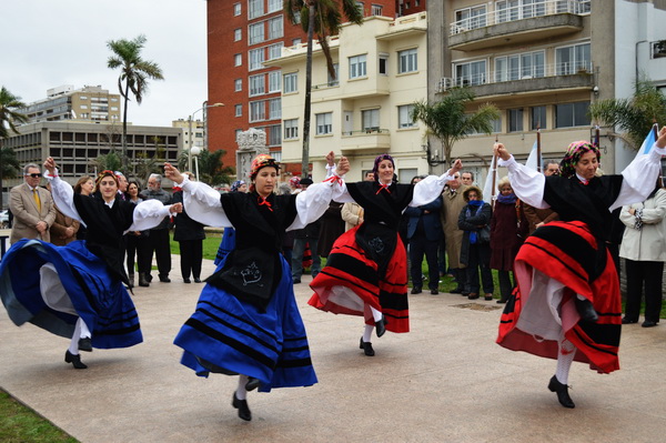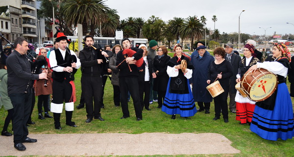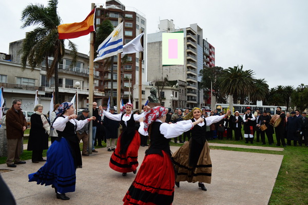 Dieron solemnidad al acto, la banda de la Armada Nacional que ha interpretado los himnos de Uruguay y España, y la banda de gaiteros y cuerpo de baile de Casa de Galicia que interpretaron el himno gallego y bailaron para todos los presentes.