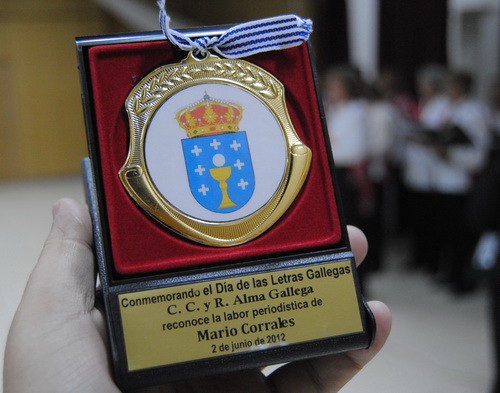 Recibimos medalla, nuestro colega de España Exterior quien agradeció en gallego y quien suscribe por España vale.com.