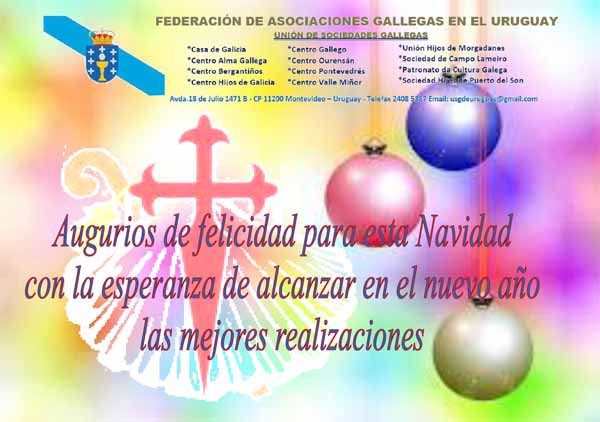 Gumersindo Novoa Rodriguez Mario:…. SOLO DESEARTE LO MEJOR, JUNTO A TUS SERES QUERIDOS Y QUE LA NAVIDAD TE TRAIGA TODA LA FELICIDAD QUE TE MERECES Y TE HAS GANADO DURANTE TANTOS AÑOS COSECHANDO AMIGOS Y CONOCIDOS. SOBRE TODO A TRAVES DEL TRABAJO QUE REALIZAS CON LA COLECTIVIDAD ESPAÑOLA,