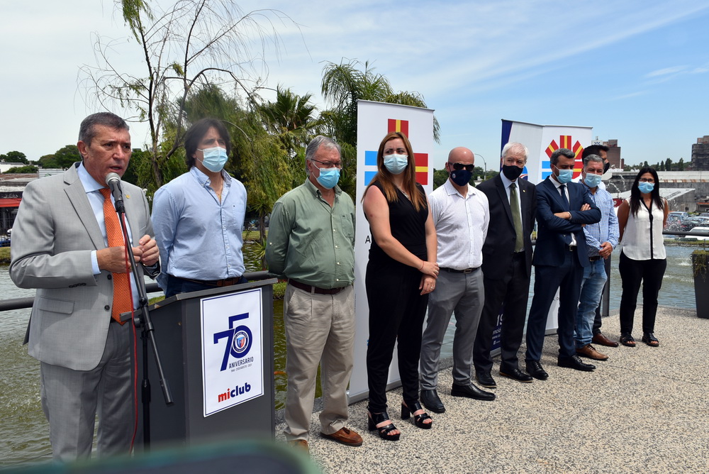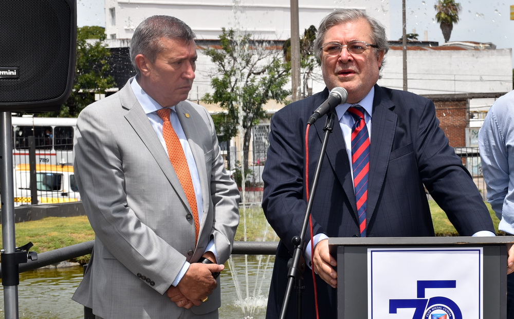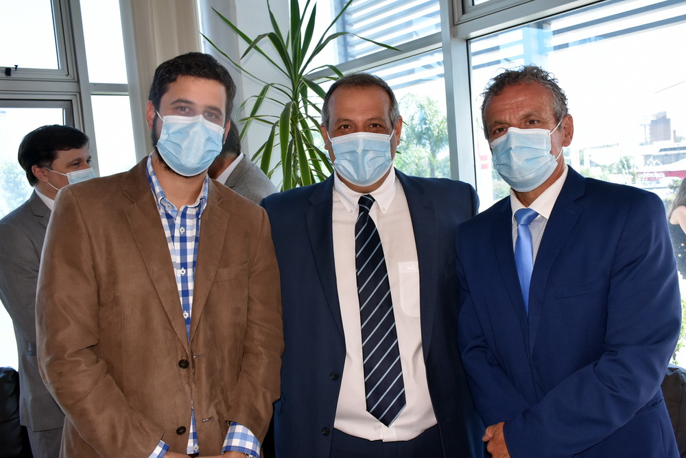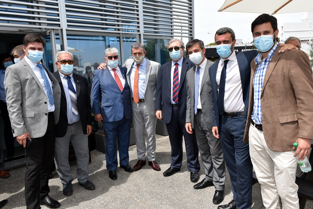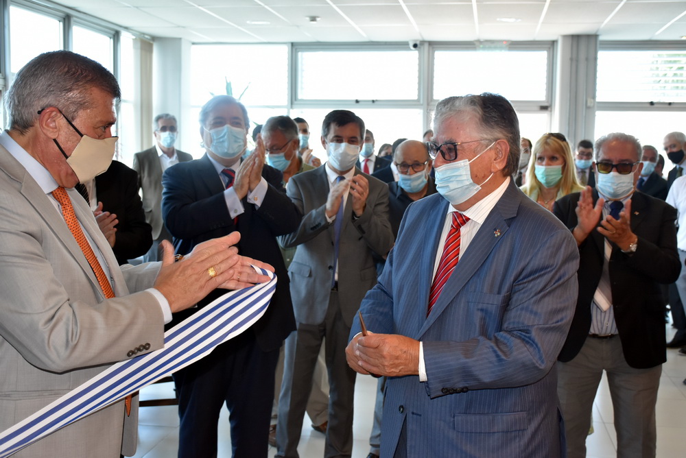 El acto en el Club de CUTCSA realizado con estricto control sanitario, ha sido iniciado por el presidente de la Cámara Uruguaya de Transporte y CUTCSA Juan A. Salgado franqueado por directivos.
