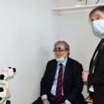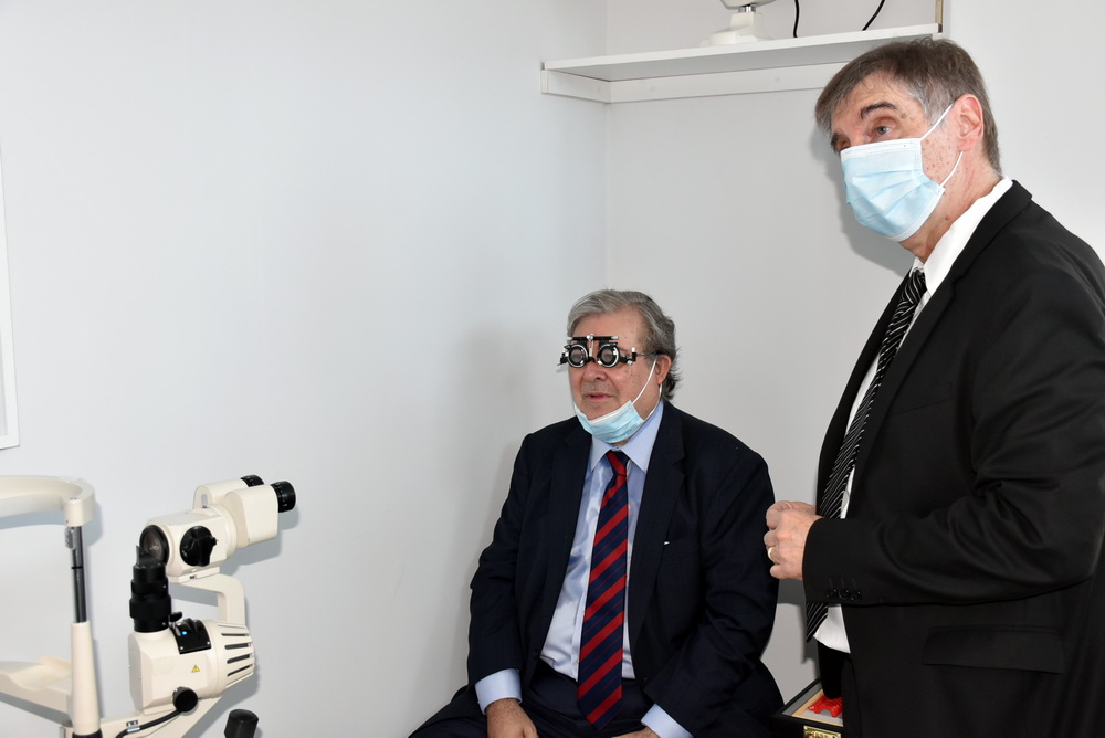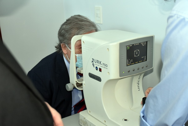 El Dr. Ricardo Mester secundado por el Lic. Pablo Bidarte ha hecho el estudio oftalmológico y le recetó los nuevos lentes al Dr. Martínez. en solo 5 minutos utilizando el novedoso equipamiento.