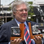 Juan Salgado ha obsequiado a Julio Martínez en nombre de todo el directorio del Club y Cutcsa dos apretadores de libros para su biblioteca y rincón de las cosas de CUTCSA.