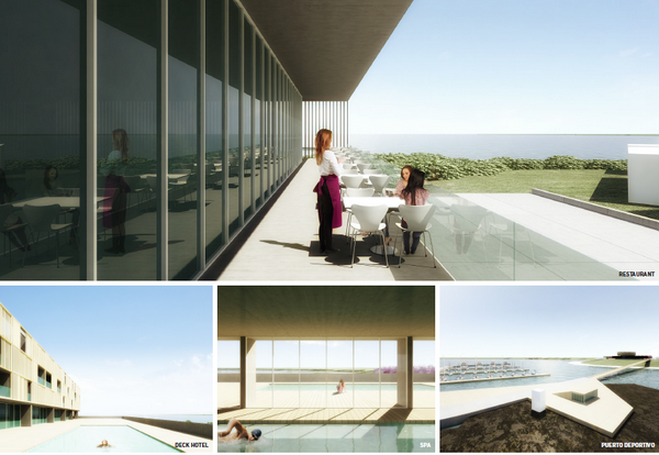 El solo pensar en un hotel casino cinco estrellas como el dibujo lo muestra, con azoteas transitables para disfrutar de las vistas y piscinas junto al mar de 2600 m2. Un puerto deportivo de 170 amarras y un paseo costero de 30.000 m2. Deja traslucir la magnitud de posibilidades de desarrollo que esto le dará al balneario canario.
