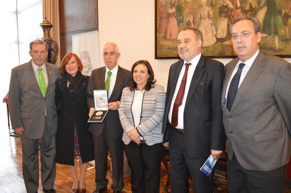 El director Gral. de emigraciones Aurelio Miras Portugal recibió la «medalla distinción» por su destacada trayectoria tanto en España como en Galicia, de manos de la intendente Profesora Ana Olivera conjuntamente con la resolución que avala la misma.