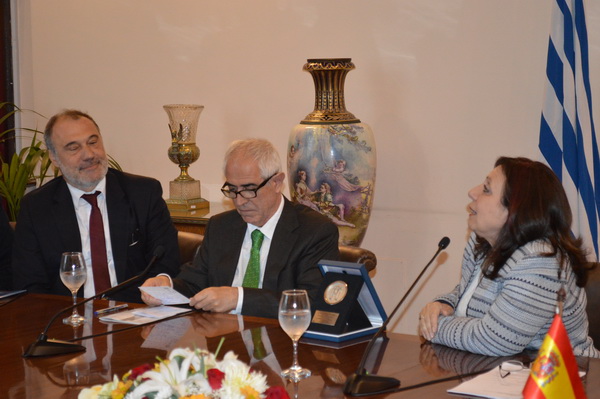 El acto se ha llevado a cabo en la sala de sesiones de la IMM, hoy 13 de mayo al mediodía con la presencia de la intendente de Montevideo Ana Olivera, la presidente de la junta departamental, Elvira Maite López, el embajador de España Roberto Varela, el cónsul gral. Manuel Fairene, el vice cónsul Juan Lugo, el consejero laboral Andrés G. Murga, el consejero cultural Jorge Friend, los directores de la IMM y directivos del Centro gallego encabezados por su presidente Jorge Torres Cantalapiedra.