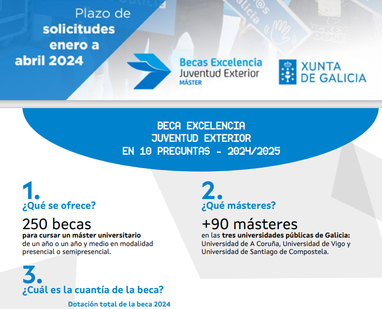 BECAS EXCELENCIA JUVENTUD EXTERIOR – Xunta de Galicia Publicado por Mario Corrales | Ene 12, 2024 | Comunicados, Noticias | 0 | ABRIR AQUÍ EL PDF 240111_BEME_folleto