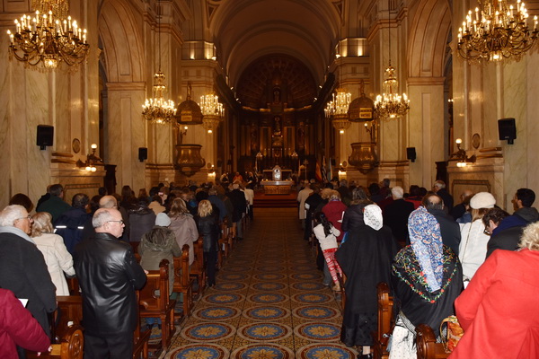 Mon señor Nicolas Cotugno ha recibido a los fieles en la puerta de la catedral.