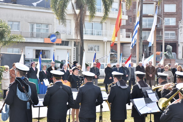 La banda de la armada nacional ha dado marco solemne a la celebración, interpretando los himnos de Uruguay, España y Galicia, con la dirección de Natalia Sanabria, que también ha hecho un duo de gaitas con Juan haciendo un pasodoble que bailaron los presentes.