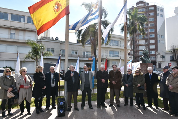 En una mañana gélida, como siempre, pero soleada esta vez, se ha realizado la ofrenda floral al pie de Rosalía de Castro en la plaza Galicia. Representando al colectivo gallego, el presidente de entidades gallegas, Román Nogueira, la presidente del patronato de cultura gallega, Ana Lorenzo, ambos organizadores del evento, y un puñado cada vez más reducido de directivos.
