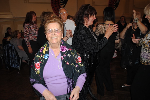 La fiesta ha sido amenizada por el grupo de Beatríz Villalba y ha habido sorpresas como la de una profesional cantante lírica, Mirtha Medina que con un tono y acting estupendo interpretó «Balada para un loco». La verdad que nos dejó a todos locos aplaudiendo hasta que logramos cantara «Garúa» siempre con la magistral dirección musical de Roque Cocina.  Genios todos !!!