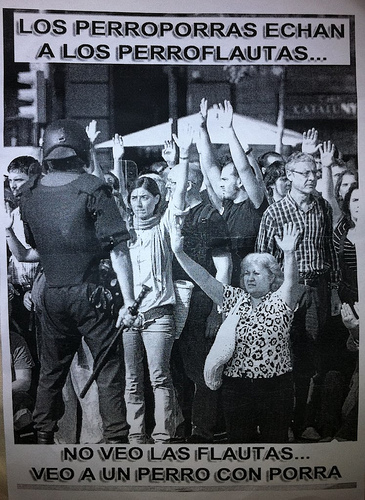 Las paredes muestran fotografías de los mossos de escuadra en la desocupación de los «acampantes» frustrada.