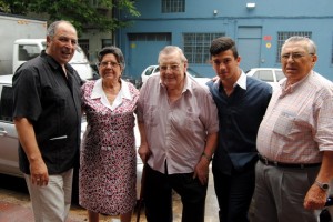 Vemos en esta foto a la familia Touriño llegando a su institución del «Alma» gallega. (Manolo al centro).