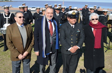 Pres. FAG Carlos Barcia, Emb. Roberto Varela, Director de la Banda de Parada de la Armada nacional, Sec. FAG Eduardo Alonso