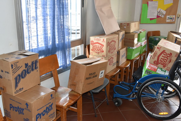 Autoridades del Consejo Directivo de la Cruzada Obra Dr. Caritat, encabezados por su presidente José María Garcia Álvarez, el secretario Martín Rodríguez Caridad y el consejero Nelson Berenguer han sido recibidos por personal docente para hacer entrega de una importante donación de material didáctico y de limpieza.