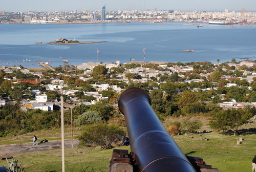 El Cerro de Montevideo, el cual figura en el cuartel superior de la derecha del Escudo de Uruguay como símbolo de fuerza, está ubicado adyacente a la bahía de Montevideo.