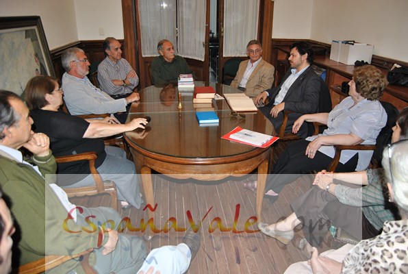 El secretario Xeral ha sido recibido por las autoridades en la sala de sesiones donde el vicepresidente Nelson Regueiro le ha dado la bienvenida y la conversación a continuado en gallego. Antonio R. Miranda ya había conversado con Ana Lorenzo, la presidente de esta institución al mediodía (única mujer presente), en el almuerzo que se realizó en la parrillada Nuevo García de Carrasco.