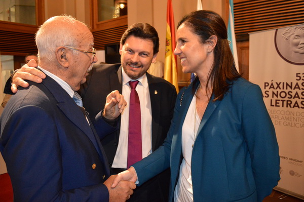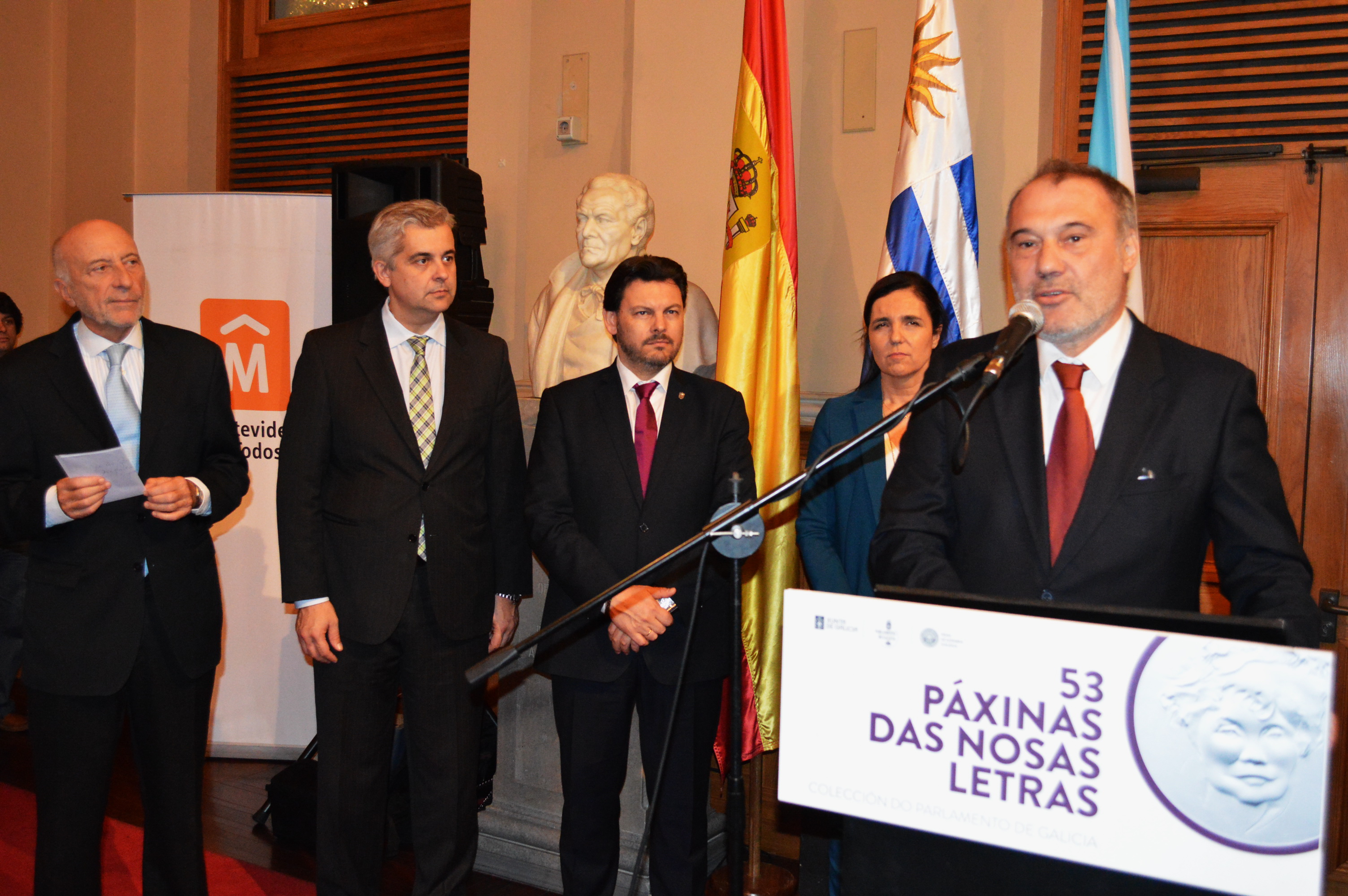 Con la presencia de la presidente del parlamento gallego, Pilar Rojo Noguera, el secretario xeral de emigración Antonio Miranda, el embajador de España Roberto Varela, el cónsul gral Manuel Fairene, el delegado de la Xunta López Dobarro y las máximas autoridades de la colectividad, se ha realizado la inauguración hoy en el Teatro Solís de Montevideo de la exposición titulada ‘53 páxinas das nosas letras’.