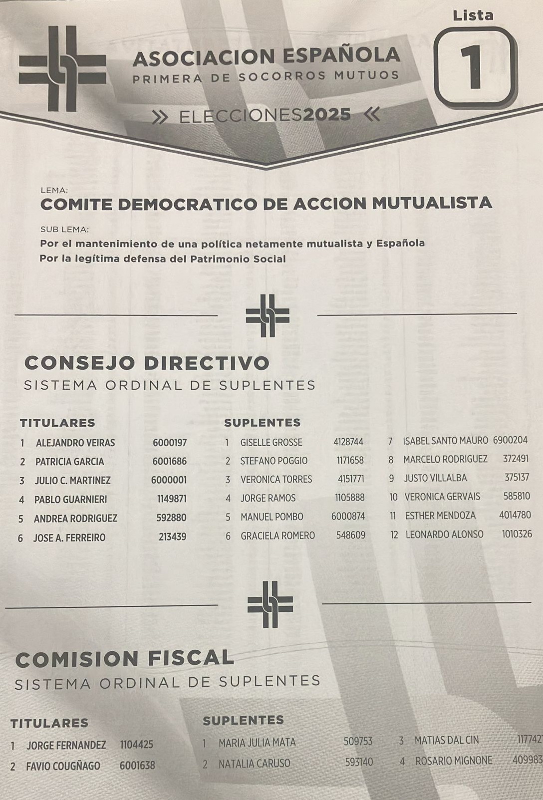 Se está realizando hoy 5 de octubre de 2025 el proceso de acto eleccionario para elegir nuevo consejo directivo y comisión fiscal en la Asociación Española.