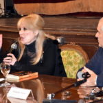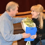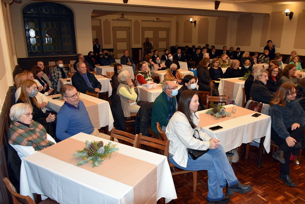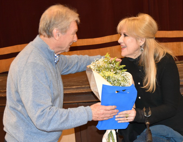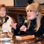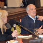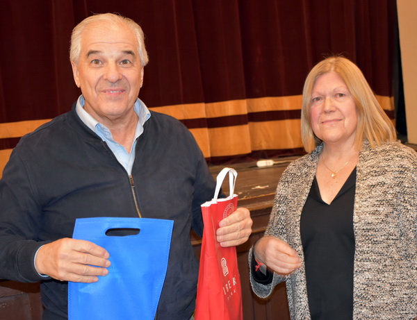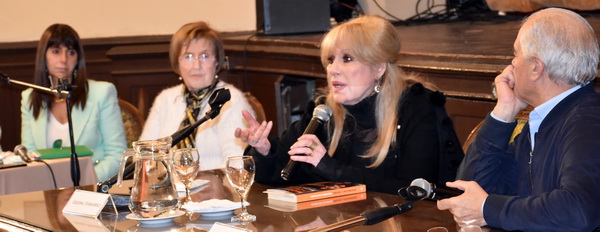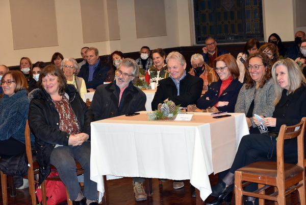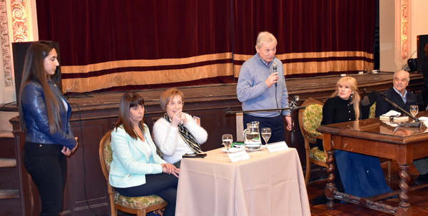 El presidente del Centro gallego de Montevideo Ramón Lorenzo y la presidente de la Casa de Portugal Gabriela de Abreu, han entregado obsequios en nombre de ambas instituciones a los disertantes Cristina Fernández y Fernando Vilar.