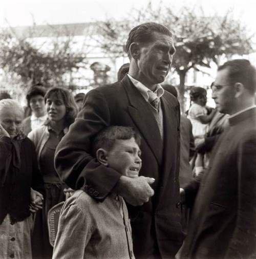 Aquel 27 de noviembre el fotógrafo Manuel Ferrol fue un testigo de excepción. Una de las fotos que tomó, titulada ‘O home e o neno’, muestra a un niño y a un padre llorando abrazados mientras despiden a familiares que se van al otro lado del charco. El padre era el fisterrán Manuel Ángel Calo Marcote, conocido como ‘O Jurjo’, de 29 años, que despedía a sus padres, una hermana y varios primos que zarpaban hacia Argentina junto a toda una generación de gallegos. El niño, uno de sus cinco hijos, Juan Jesús, de tan solo ocho años.