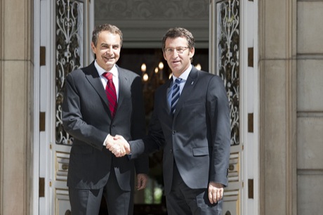 En su primera visita a la Moncloa el presidente de la Xunta de Galicia, D. Alberto Nuñez Feijóo, acordó con el jefe de Gobierno José Luis Rodríguez Zapatero, establecer un pacto institucional al más alto nivel, que fije plazos realistas y ambiciosos para el desarrollo de infraestructuras para la llegada del tren de alta velocidad a Galicia para el año 2012.