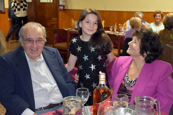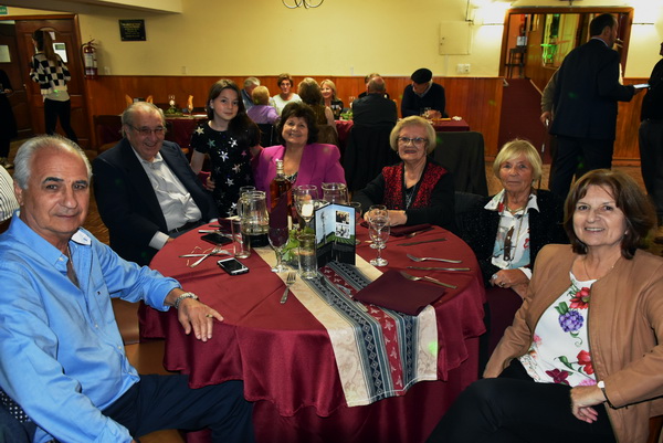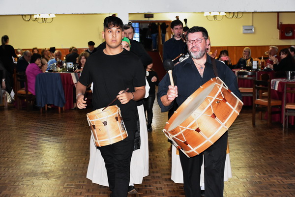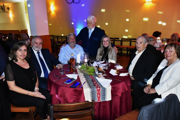 El presidente de la institución José Vidal está regresando esta noche desde Galicia y no pudo llegar a tiempo, pero sus hijos,  esposa y la comisión de fiesta con Yolanda Sena a la cabeza, se pusieron la institución sobre sus hombros y todo salió,  casi, como si estuviera él presente. Hija y nietos Vidal,  han sido anfitriones desbordando simpatía.