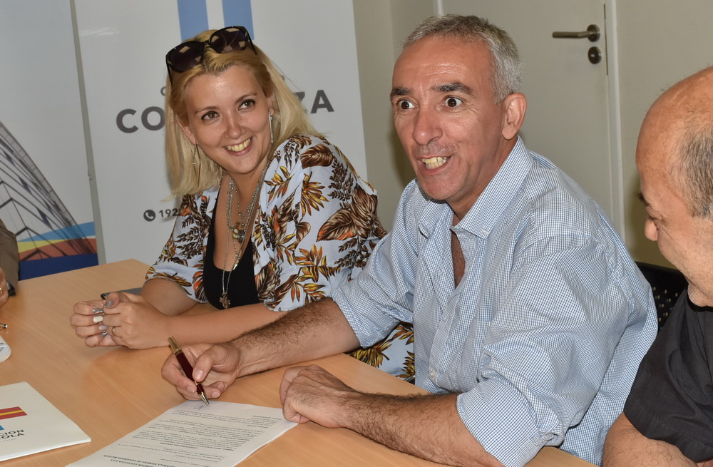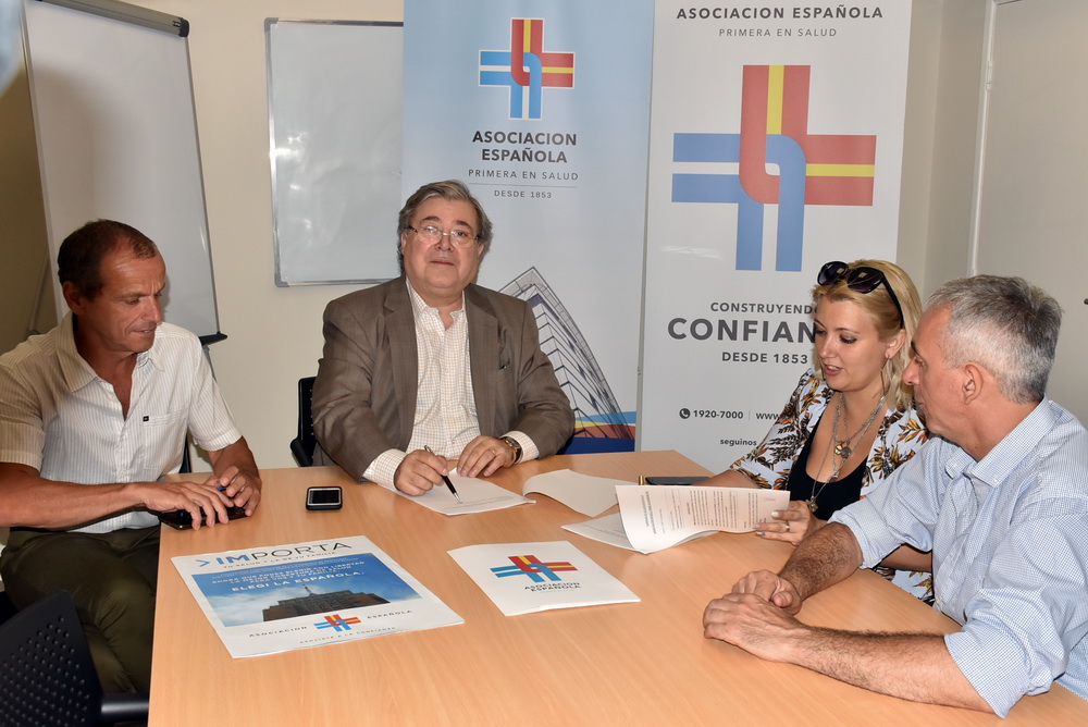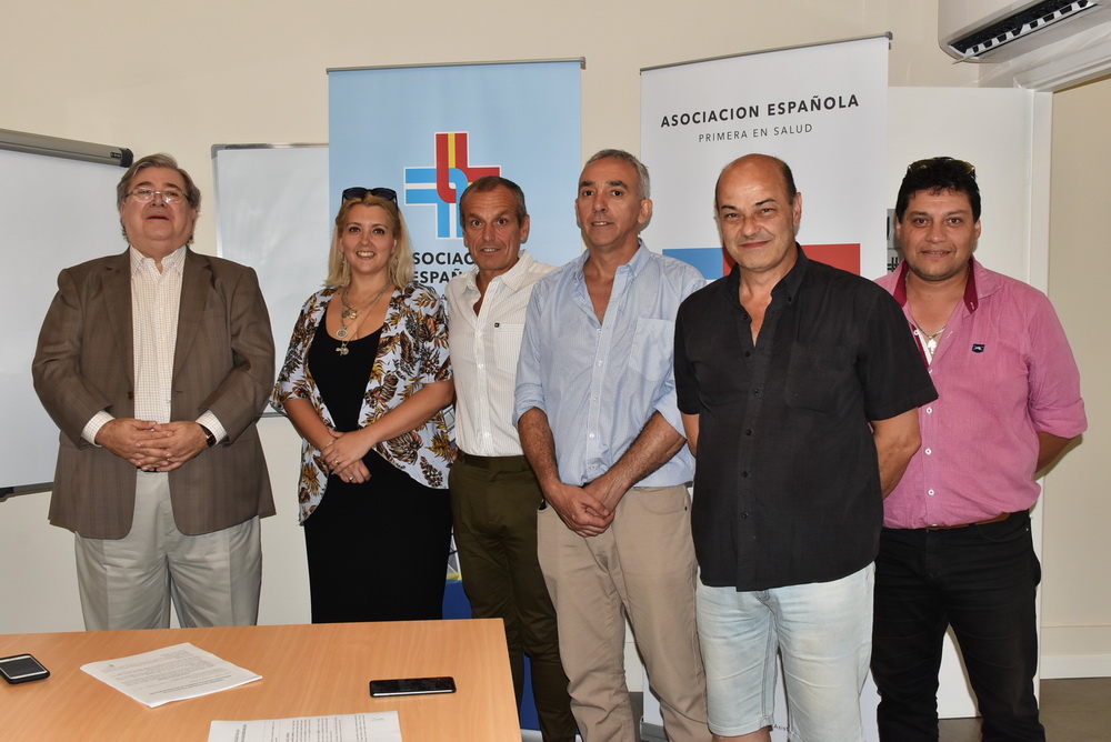 La secretaria de ADEOM Valeria Ripoll acompañada por integrantes del sindicato de trabajadores luego de recorrer las flamantes instalaciones de la policlínica Centro, han firmado un acuerdo con Asociación Española. El gerente Gral. Dr. Julio Martínez y el gerente administrativo Lic. Nestor Conde han explicado, que redundará en importantes beneficios en órdenes, tiques, estudios, medicamentos y una gran accesibilidad a los servicios de salud.