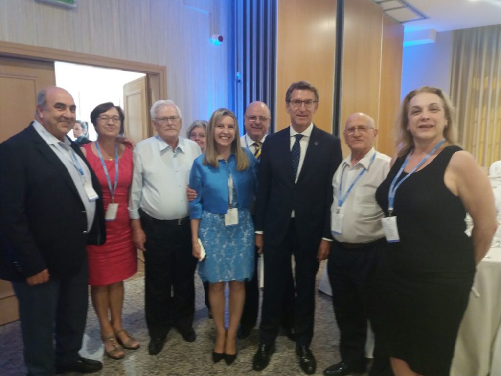 En la foto nuestra querida Elvira Dominguez junto al presidente Alberto N. Feijóo y empresarios gallegos del mundo en el V encuentro, hoy en Madrid. Cortesía de Balta.