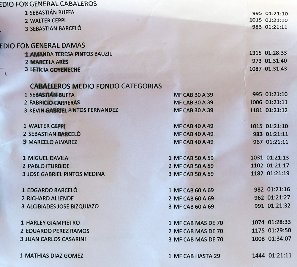 PLANILLAS DE GANADORES EN TODAS LAS CATEGORIAS Y TIEMPOS REALIZADOS