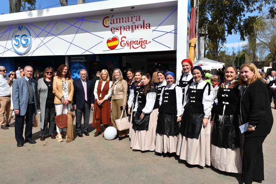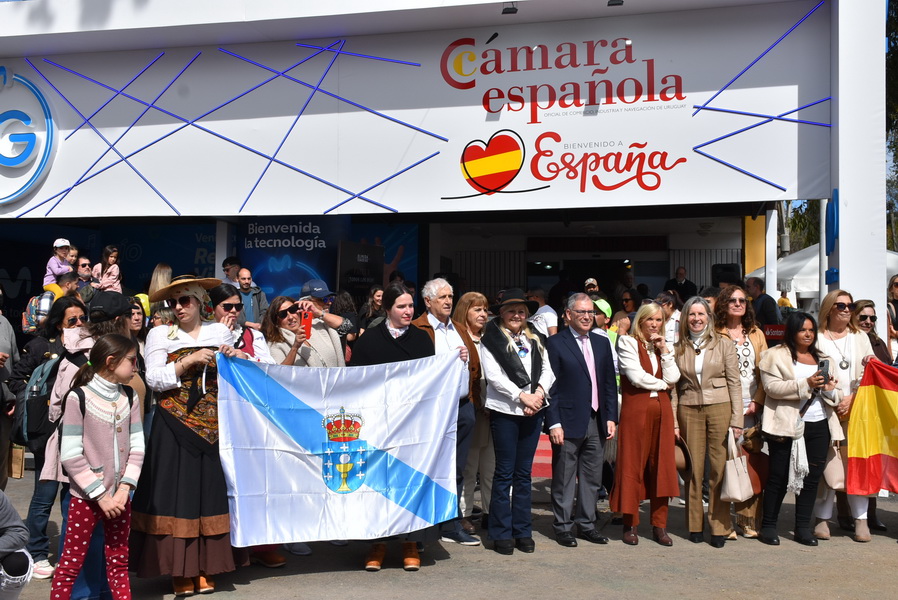 A las puertas del pabellón de la Cámara Española en la EXPO PRADO 2023 La federación de instituciones gallegas de Montevideo ha invitado a participar los grupos de danzas de las instituciones en un acto en el que participó la Vicepresidente de la República Beatriz Argimón, el consejero comercial de la embajada de España Carlos Domínguez, La consejera de seguridad social Isabel de Zulueta, la delegada de la Xunta de Galicia Elvira Domínguez, el presidente de la Federación de Instituciones gallegas Martín R. Caridad y empresarios de la cámara española de comercio industria y navegación.