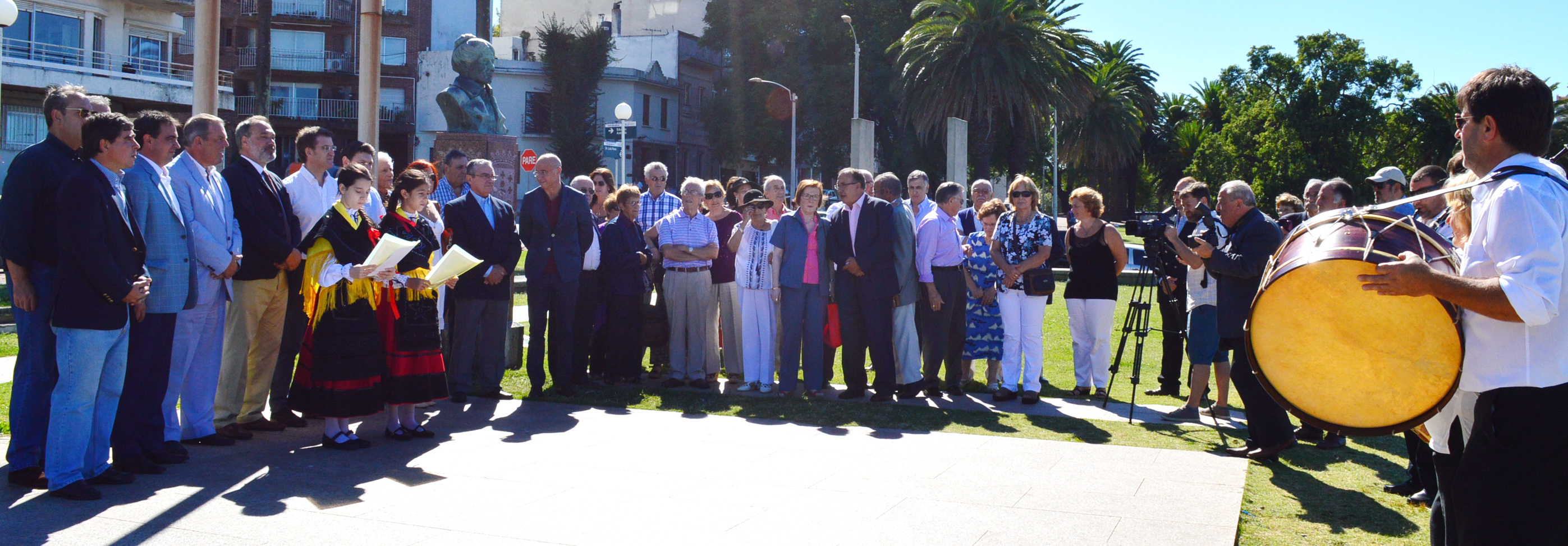Se ha realizado hoy a la mañana en Plaza Galicia la celebración del día de la mujer organizado por el Centro Gallego de Montevideo, colocando una ofrenda floral al pie del busto de Rosalia de Castro.