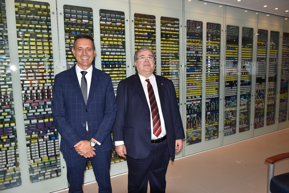 Se trata de la última tecnología adquirida en Italia llamado Ecluid3D , pero aquí se le ha rebautizado simpáticamente como Manolo. La robotización dará un servicio muy efectivo para la entrega y stock de medicación, controlando además de la dispensación el vencimiento de los medicamentos.