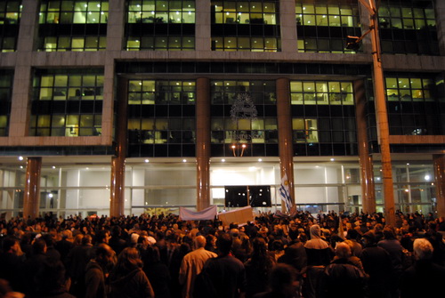 Comenzaron cantando el himno nacional y solicitaron hablar con el presidente José Mujica, quien no salió del edificio.