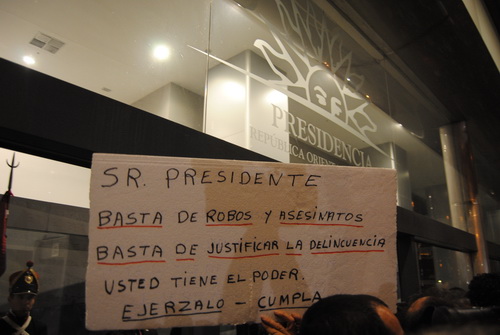 Carteles muy improvisados haciendo referencia a la falta de seguridad por la que pasa el pueblo uruguayo se vieron en la manifestación.