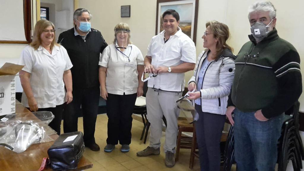 En otros centros del país también se preparan para un posible brote del virus que podría ser letal para los ancianos.Nos han hecho llegar esta foto donde la directiva del Hogar Esoañol de Mercedes en acto de entrega de mascarillas plásticas del Hospital Departamental de Soriano en el marco de colaboración para combatir Covid – 19.